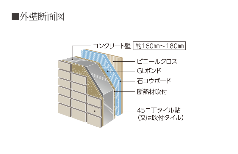 約160㎜〜180㎜のコンクリート厚を確保した、耐震性・断熱性に優れた構造です。